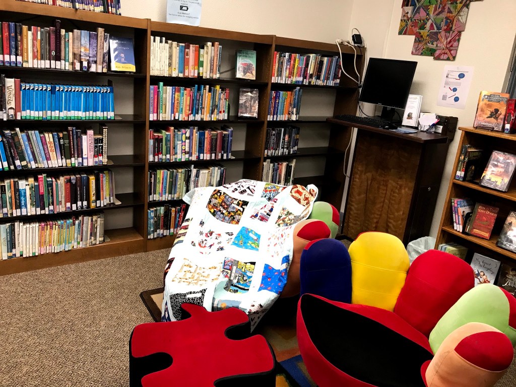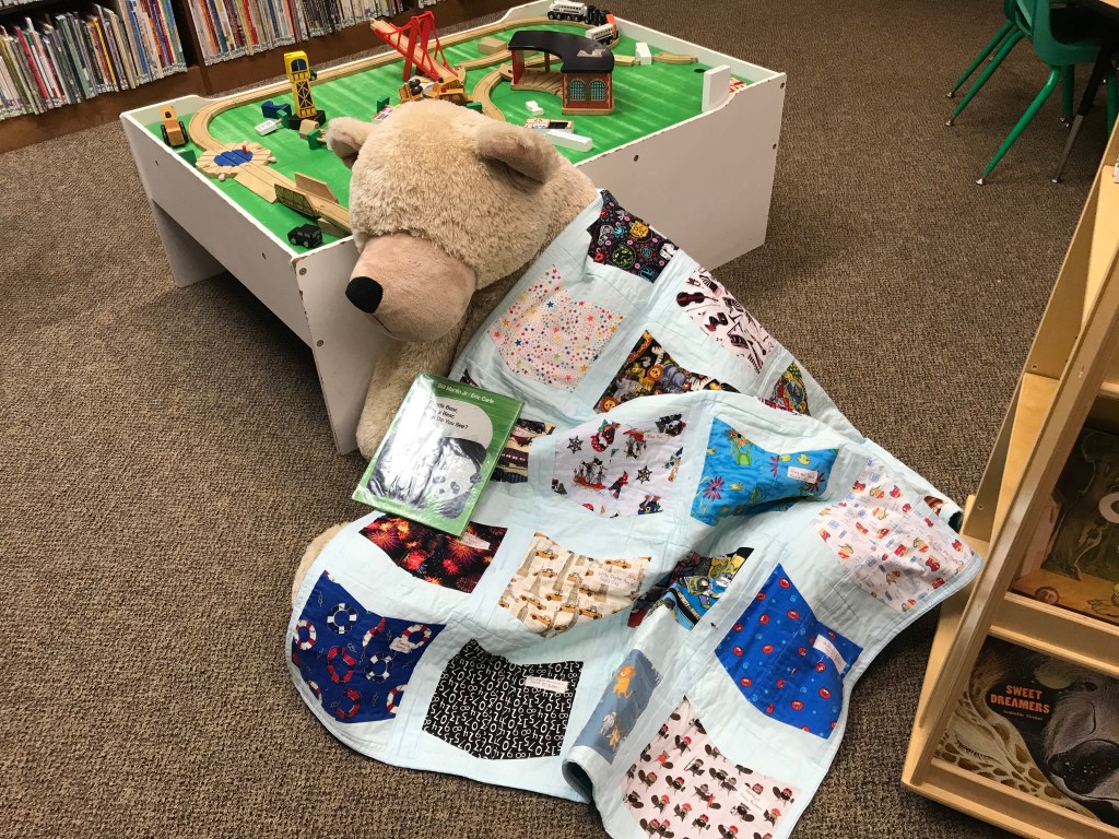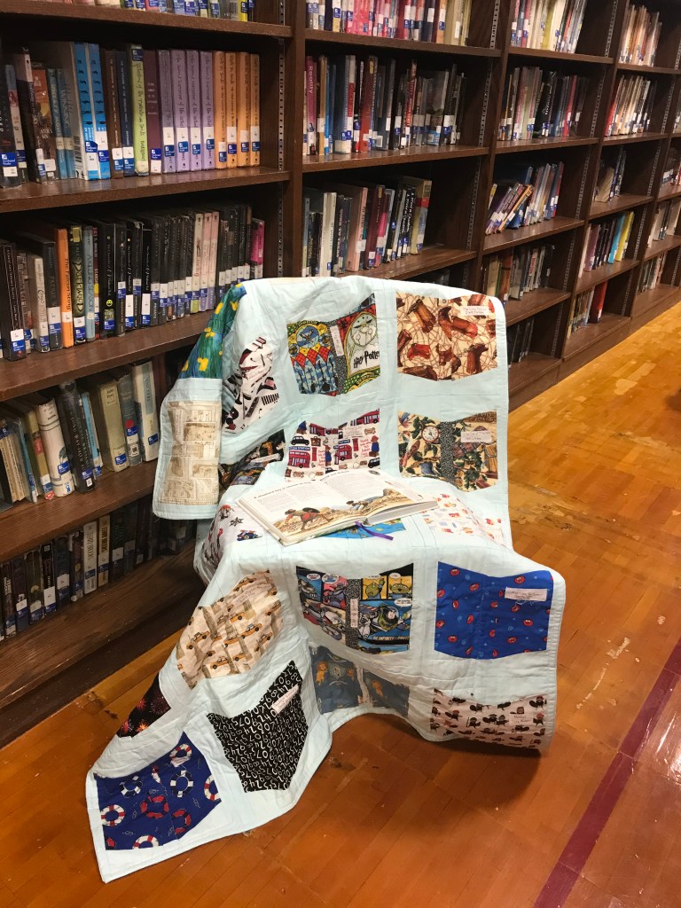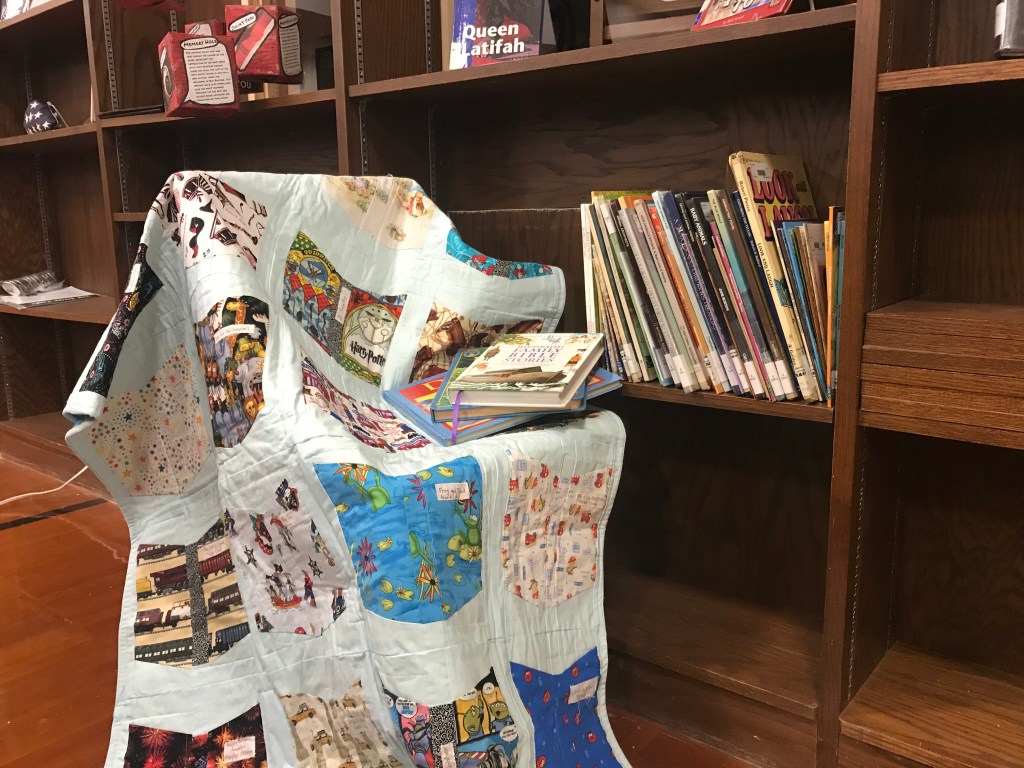 I think that one of my best decisions in life was my choice of college; not because of the education, although that was great, but because I made some of my very best friends in college. There were three of us who worked in residence life together and would often play Trivial Pursuit when one of us was on duty. We still play together every chance we get. It was one of these friends, Darcie, who first taught me to quilt. I was blessed to give her a quilt when she got married in 2015. This past weekend we visited to deliver her first son’s quilt. Besides playing Trivial Pursuit, the three of us are also avid readers and coffee drinkers, so I knew had been planning a book quilt for a couple years while we waited for baby Cole to make his appearance. Each book has a title and author and many were meaningful to Darcie, her husband, or me. It was extremely hard for me not to share pictures with Darcie ahead of time, especially when I earned a red ribbon at my hometown county fair.