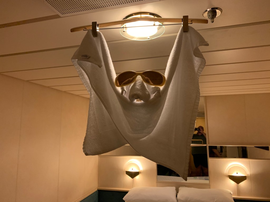 While cruising we always look forward to the towel animals the state room attendant makes. I forgot to make a note of the attendant’s name this time but he was so creative in using my sunglasses each day as a prop. When we came back to the room each night we couldn’t wait to see what he’d come up with!