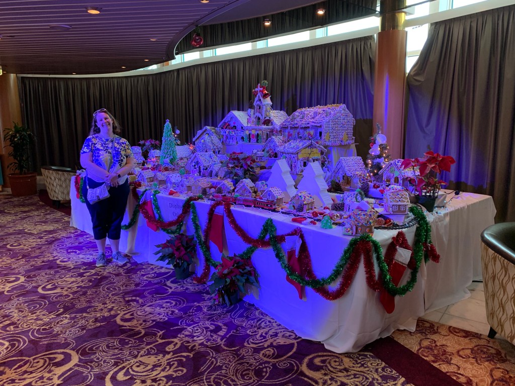 We had previously cruised over Thanksgiving twice so I was really looking forward to the Christmas decorations. This was the first time we’ve been onboard when the gingerbread village was on display, although Shawn tells me a lot of the ships do this and our previous holiday cruises were just too early for it. For New Year’s Eve they decorated the tables in the main dining room and offered special tables around the centrum for the big balloon drop and party.