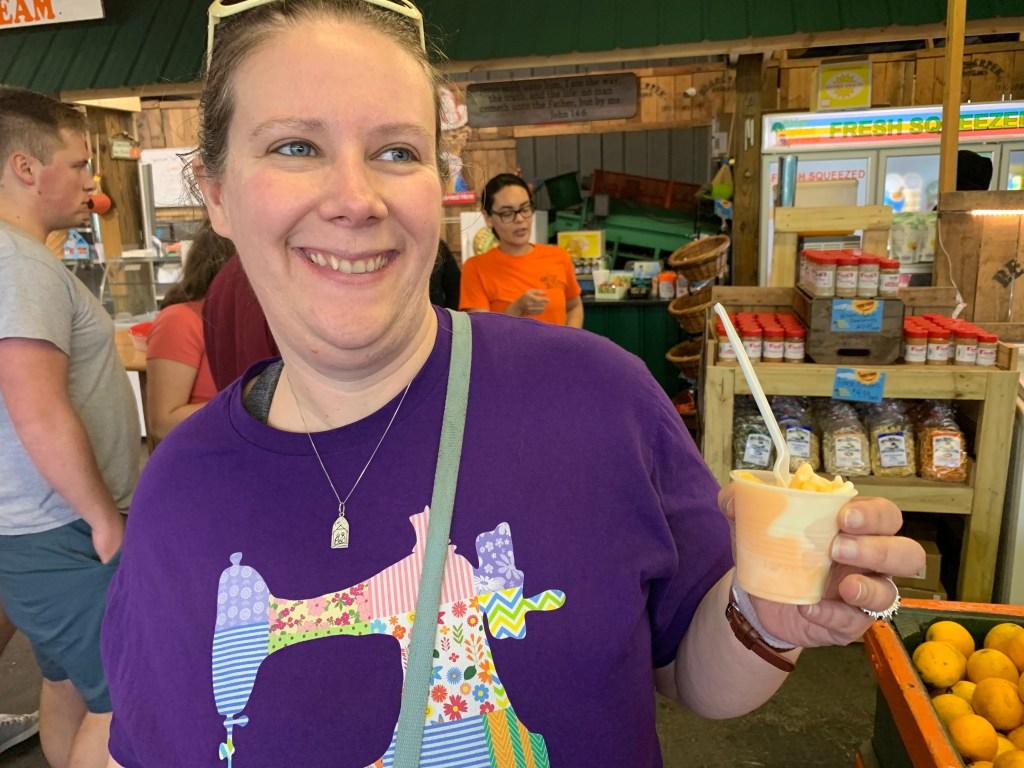 The drive to Tampa took a little longer than we anticipated because we decided to go through Orlando and visit Bob Ross’ grave. If we hadn’t taken that side trip traffic wouldn’t have been bad at all. Once we were in Florida I decided I really wanted to see an Orange Grove operation, but it started to rain while we were driving there and traffic delayed us that we arrived a few minutes after they would have stopped tours even if there were no rain. We did get to see the sorting process and the grove of trees. I was amazed at the simplicity of the sorting. There were also samples of the various fruits they grow and some really tasty ice cream. We got a locally made coconut spread and a jam to bring home. In the 1980s both of us had watched some wrestling and were Hulk Hogan fans so we visited his surf shop once we got to Tampa then we tried to go to dinner at the Hard Rock Cafe, however the wait time was far higher than we were interested in after two long days of driving so we got the glass and found dinner elsewhere.